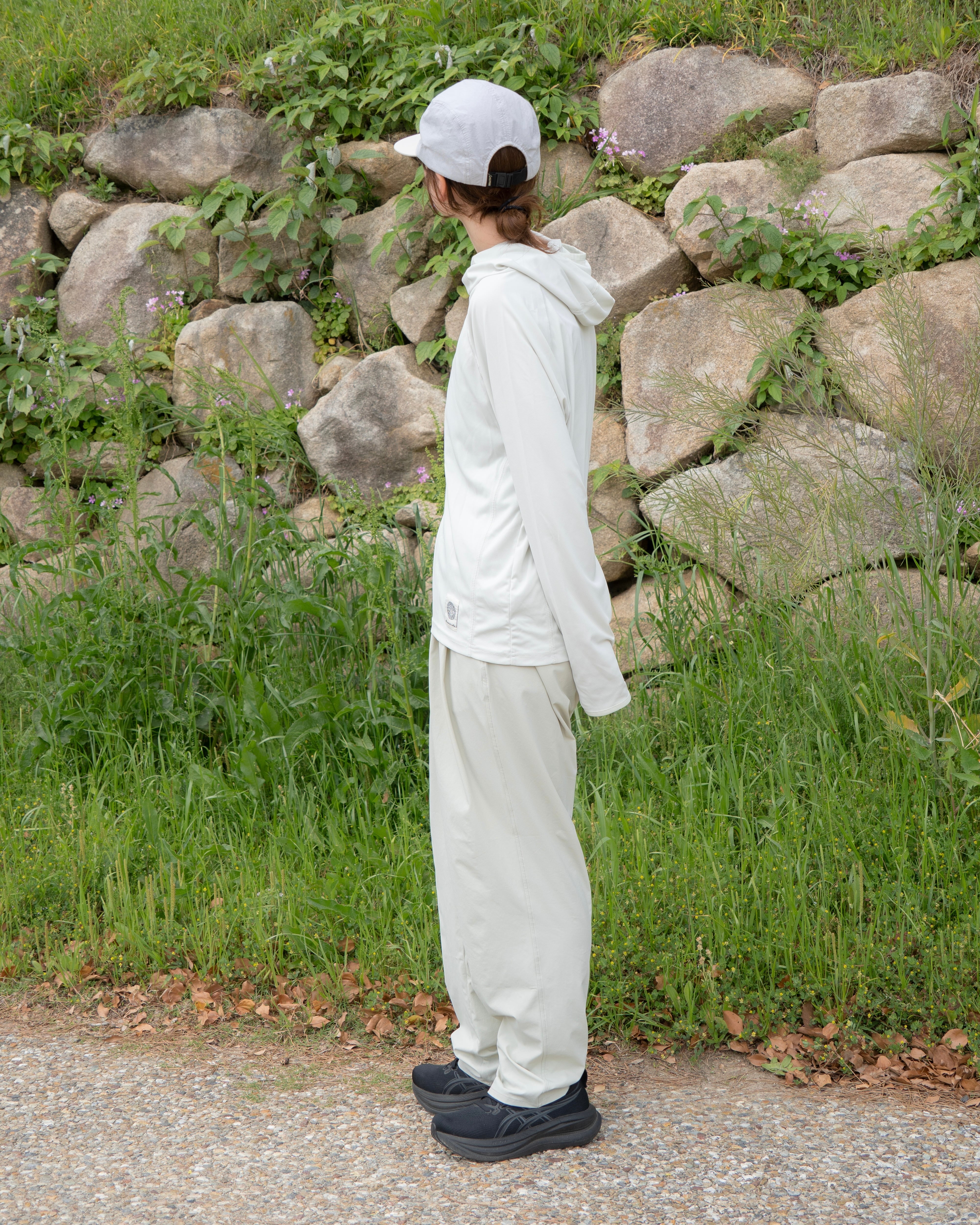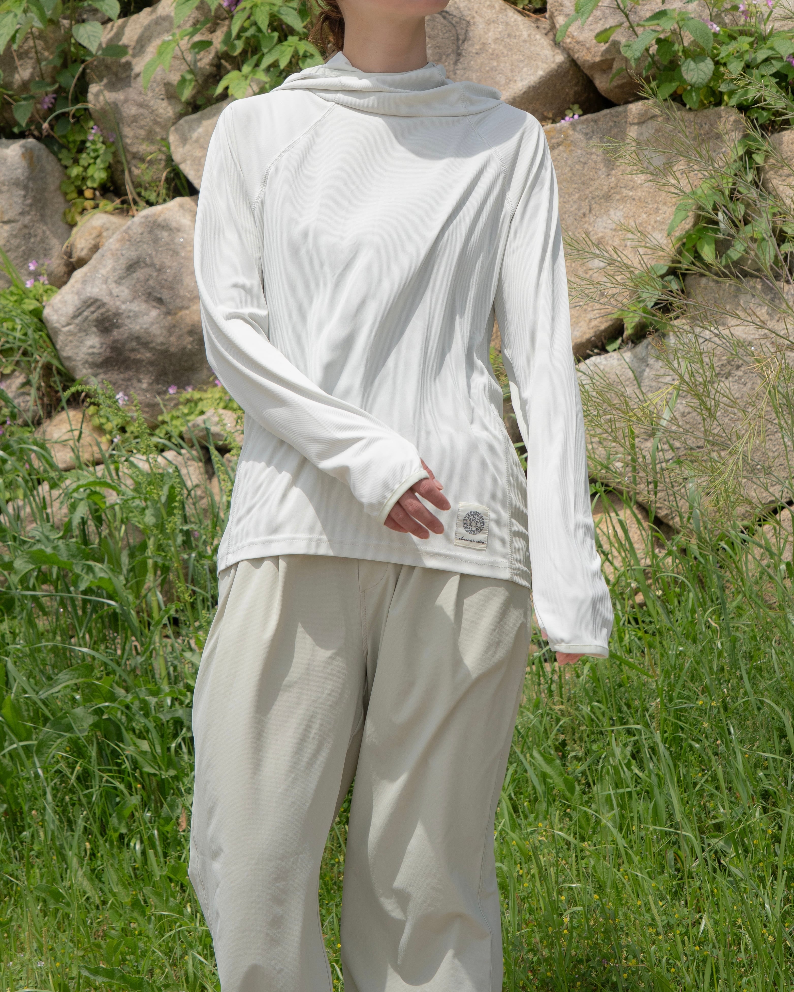 UVカット(UPF50+)、吸汗速乾、接触冷感、ストレッチ性を備えたアクティブフーディ。